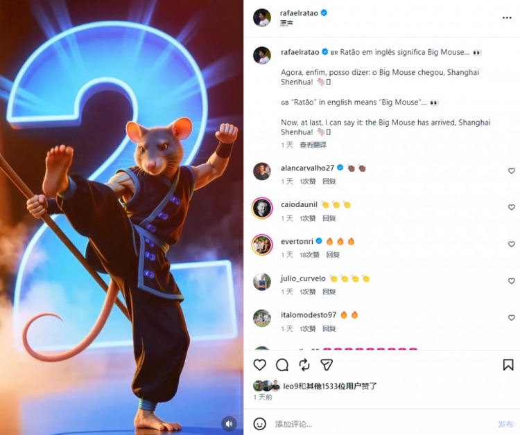 01月 17 2026 0 申花新援拉唐晒图调侃自己绰号:“大老鼠”抵达上海申花! xiaoqiao 2026-01-17 西甲 64 1月3日讯 元旦当天,申花官方宣布了前大阪樱花前锋拉斐尔·拉唐的加盟,球员上赛季斩获J1联赛银靴。今日拉唐在社媒晒出一张老鼠为主题的海报纪念自己加盟申花,他写道:“我的姓拉唐,其意为‘大老鼠’。现在我终于能够说出这句话:‘大老鼠抵达上海申花!’”